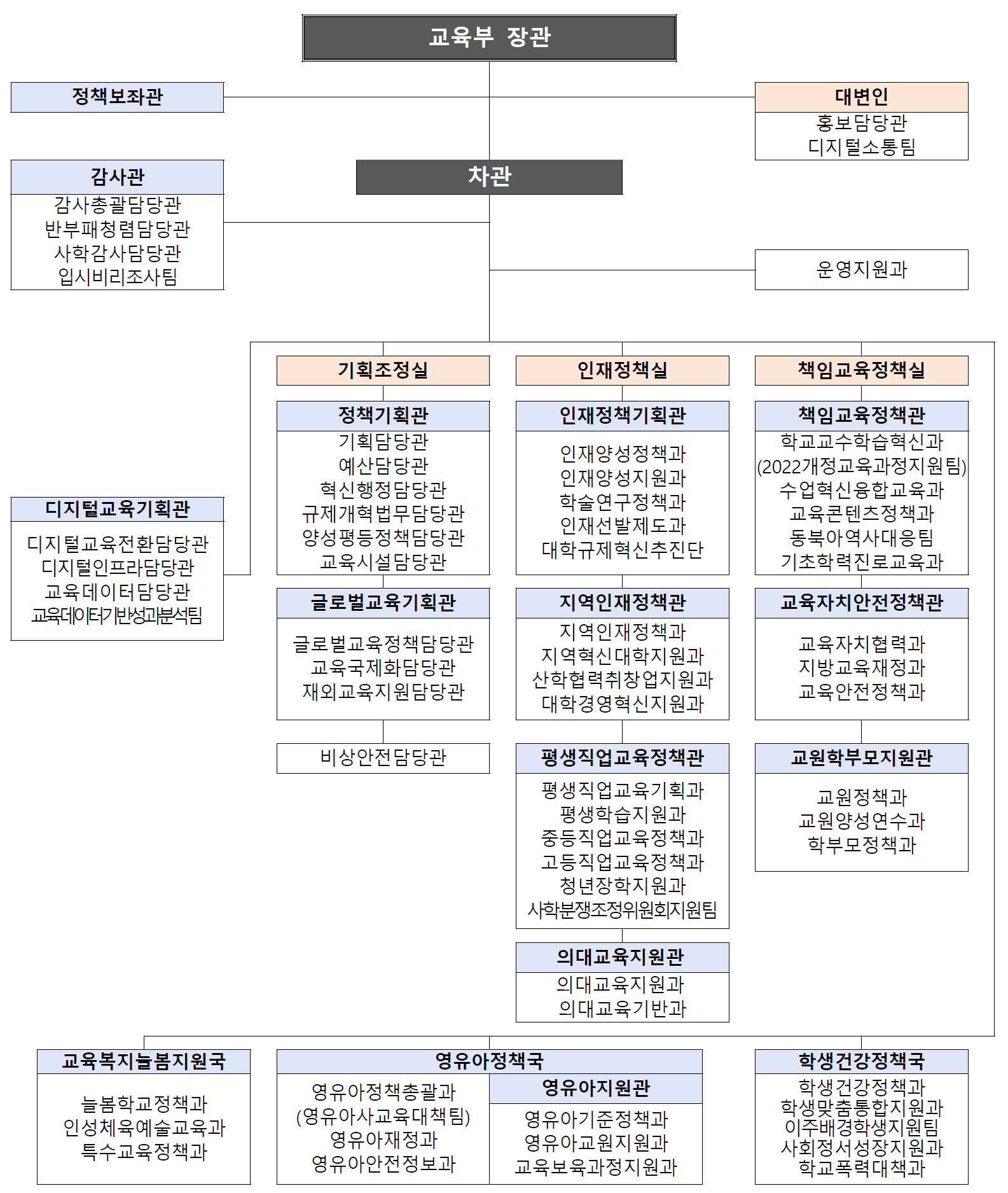 교육부의 조직도와 찾아오시는 길 안내입니다.